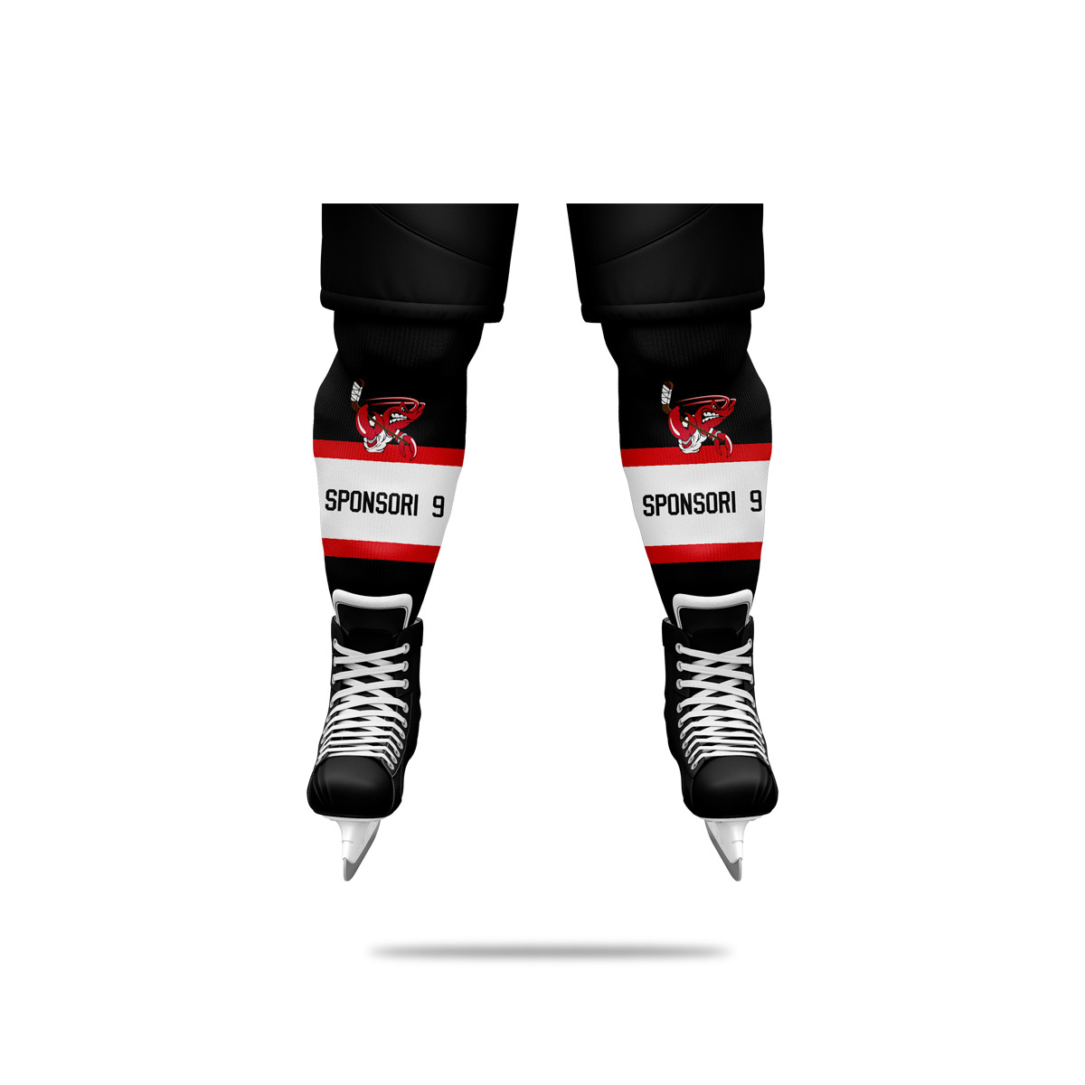 Sublimoidut jääkiekkosukat. Materiaali kestävä 100% polyesterineulos. Pelisukan hinta on aina sama riippumatta mainospainatusten määrästä. Ilmoita kassa-sivulla mihin kohtaan tuotetta mainokset haluat ja lataa tilaukseen painettavat logot. Kun valitset pelisukkaan mainoksia saat aina vedoksen hyväksyttäväksi.