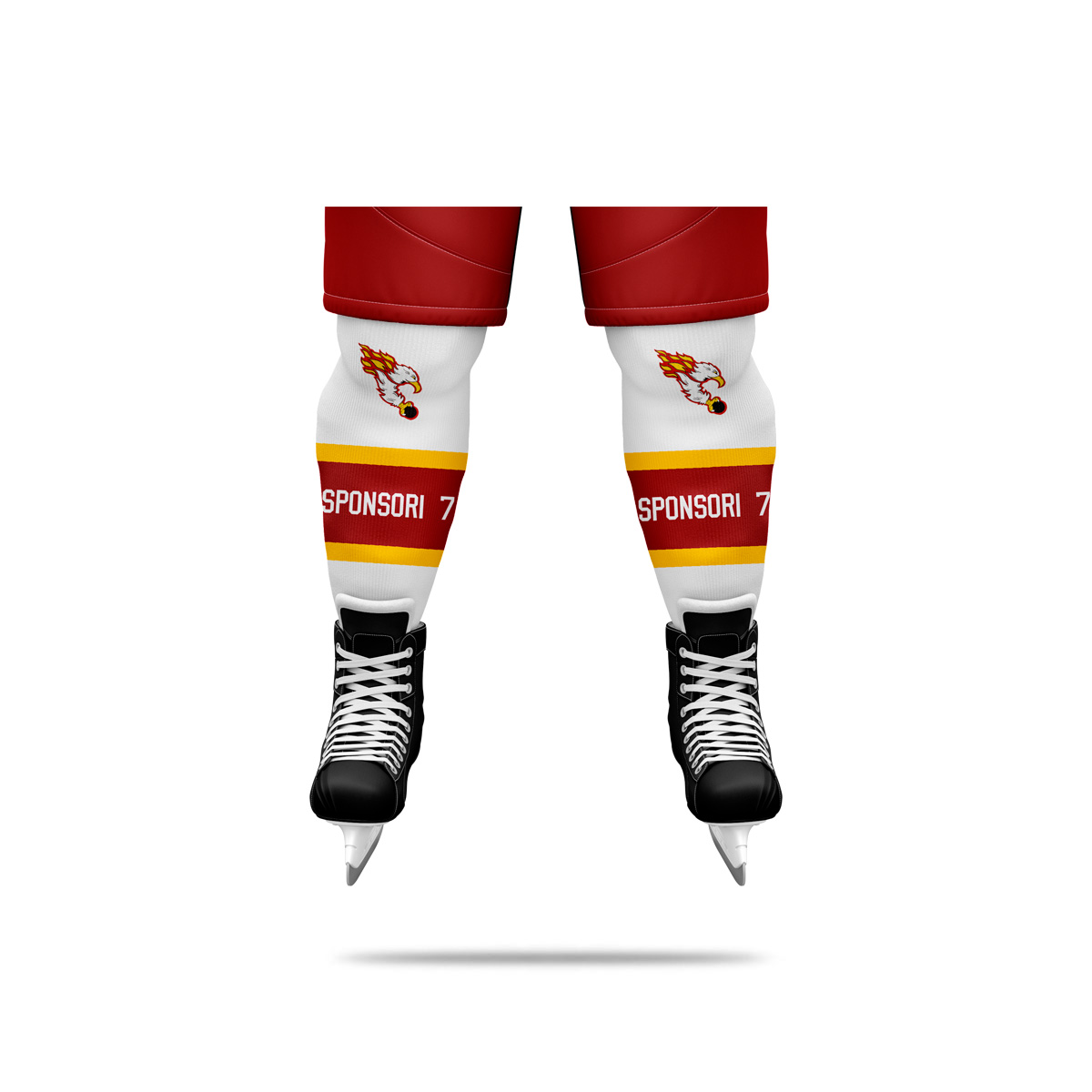 Sublimoidut jääkiekkosukat. Materiaali kestävä 100% polyesterineulos. Pelisukan hinta on aina sama riippumatta mainospainatusten määrästä. Ilmoita kassa-sivulla mihin kohtaan tuotetta mainokset haluat ja lataa tilaukseen painettavat logot. Kun valitset pelisukkaan mainoksia saat aina vedoksen hyväksyttäväksi.