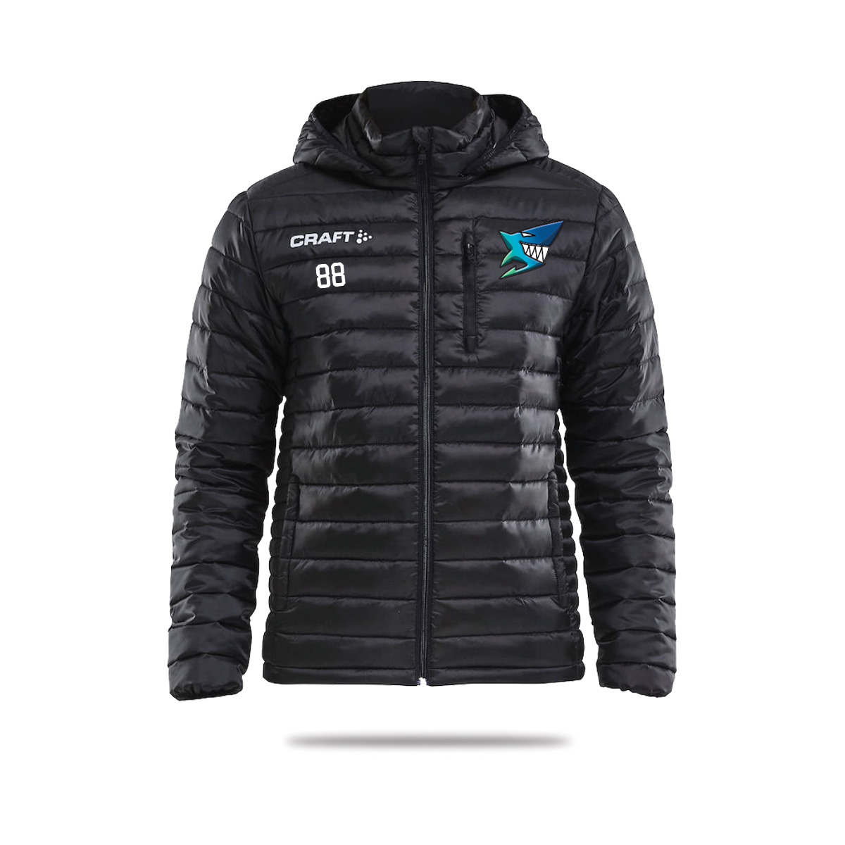 Kevyttoppatakki. Vetoketjulliset sivutaskut sekä rintatasku. Irrotettava huppu sekä vahvikekangasta hartioilla. Joustavat resorit hihoissa ja helmassa.