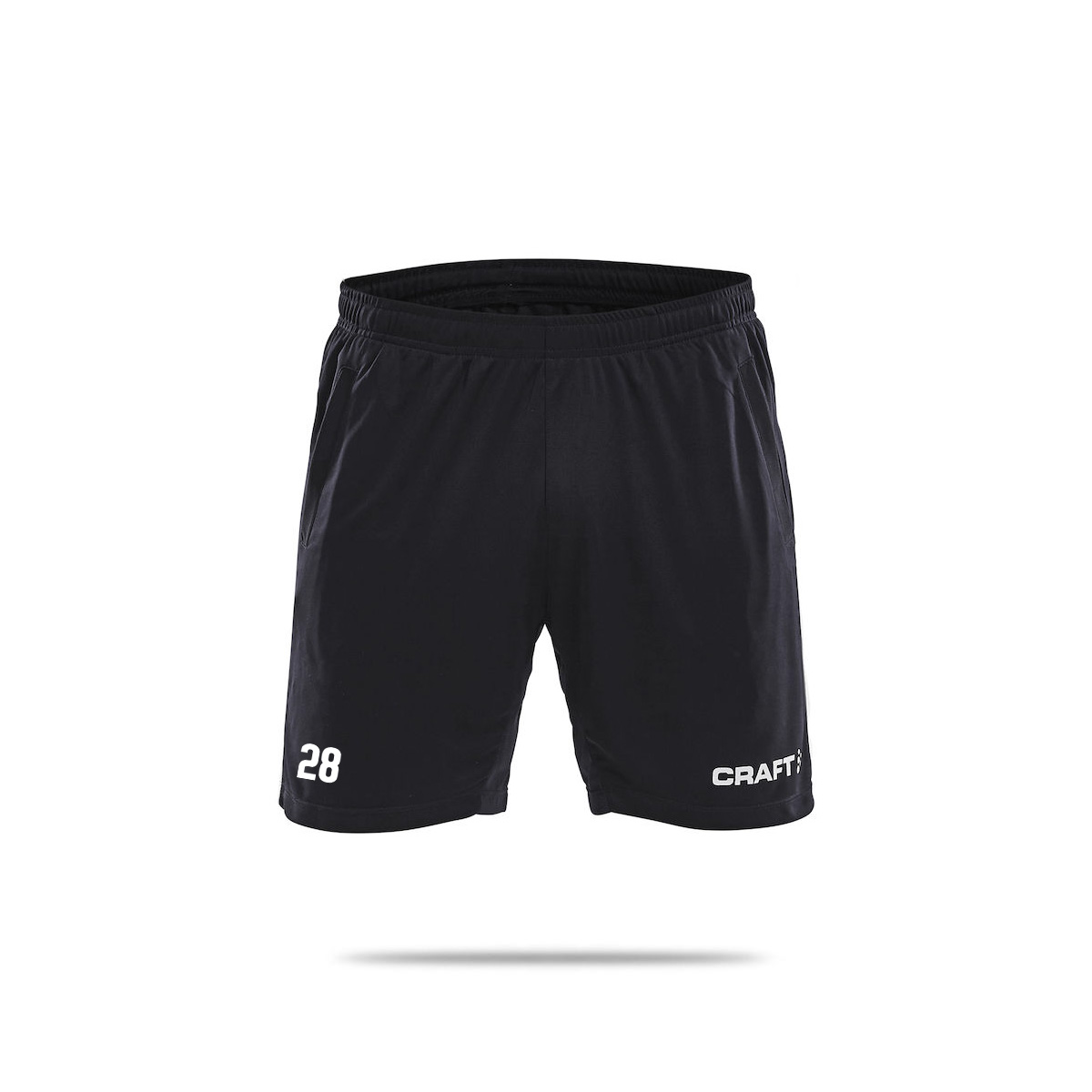 Taskullinen tekninen treenishortsi kontrastivärillä sivuilla. Hinta sisältää seuralogon kohopainatuksella.
