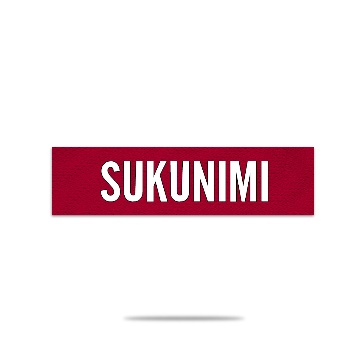 Sublimoitu nimilappu samasta materiaalista kuin pelipaita.