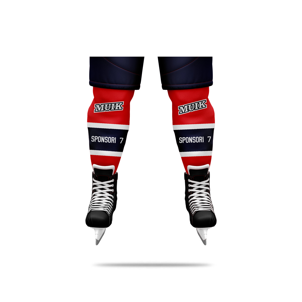 Sublimoidut jääkiekkosukat. Materiaali kestävä 100% polyesterineulos. Pelisukan hinta on aina sama riippumatta mainospainatusten määrästä. Ilmoita kassa-sivulla mihin kohtaan tuotetta mainokset haluat ja lataa tilaukseen painettavat logot. Kun valitset pelisukkaan mainoksia saat aina vedoksen hyväksyttäväksi.