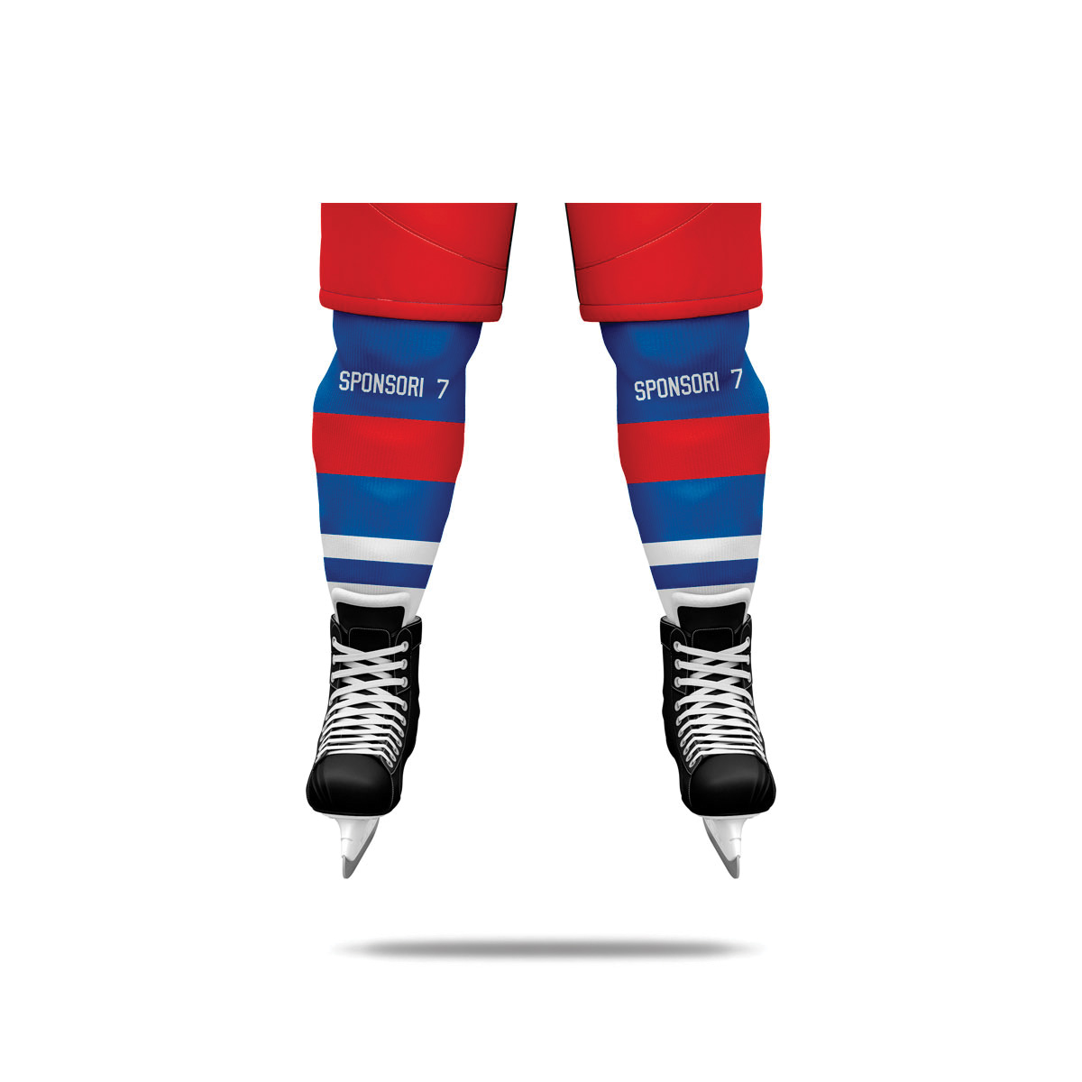 Sublimoidut jääkiekkosukat. Materiaali kestävä 100% polyesterineulos. Pelisukan hinta on aina sama riippumatta mainospainatusten määrästä. Ilmoita kassa-sivulla mihin kohtaan tuotetta mainokset haluat ja lataa tilaukseen painettavat logot. Kun valitset pelisukkaan mainoksia saat aina vedoksen hyväksyttäväksi.