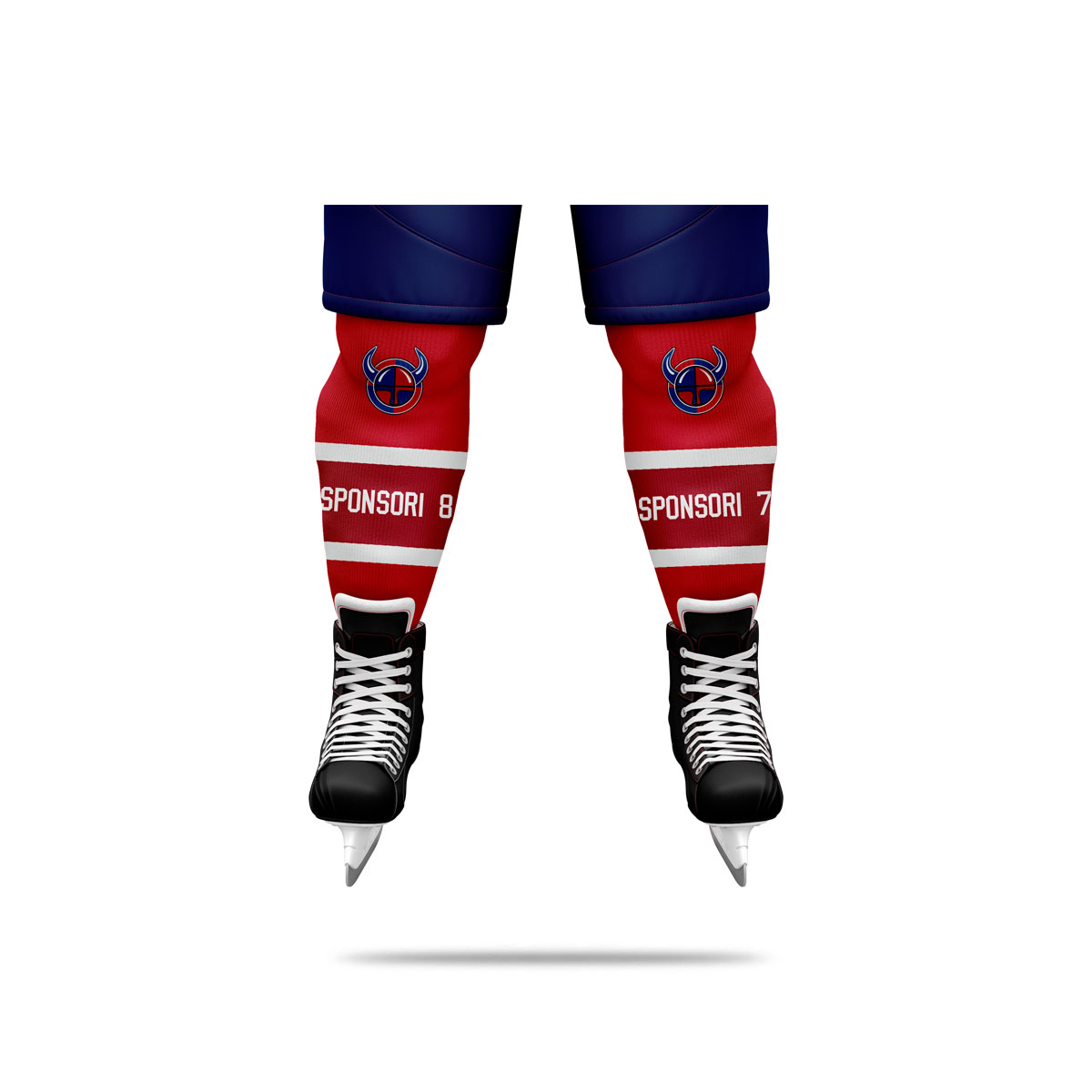 Sublimoidut jääkiekkosukat. Materiaali kestävä 100% polyesterineulos. Pelisukan hinta on aina sama riippumatta mainospainatusten määrästä. Ilmoita kassa-sivulla mihin kohtaan tuotetta mainokset haluat ja lataa tilaukseen painettavat logot. Kun valitset pelisukkaan mainoksia saat aina vedoksen hyväksyttäväksi.