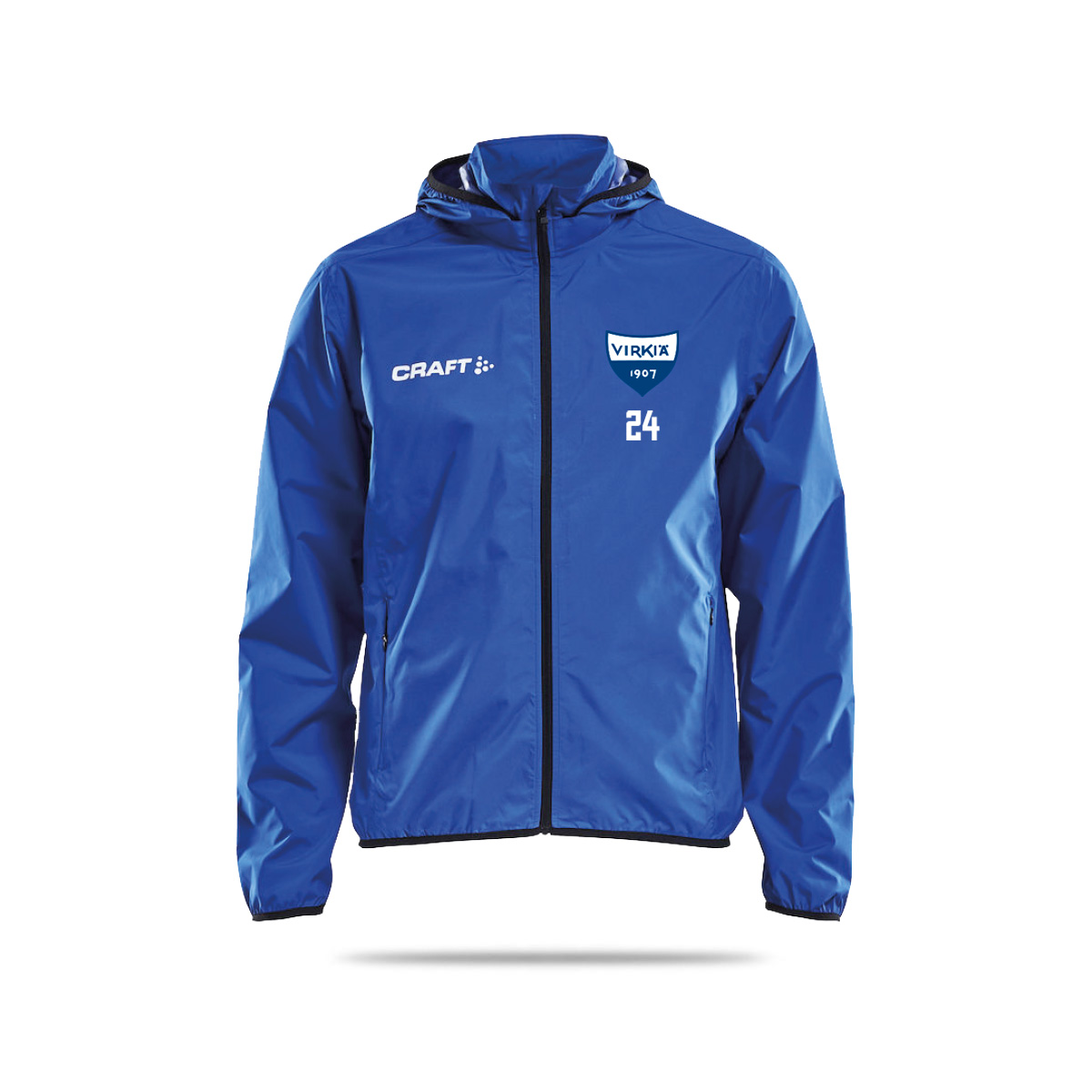 Vedenpitävä kuoritakki. Teipatut saumat. Tarrakiinnityksellä toimiva huppu löytyy kauluksen sisältä. Joustavat resorit hihoissa ja helmassa. Hinta sisältää seuralogon kohopainatuksella.