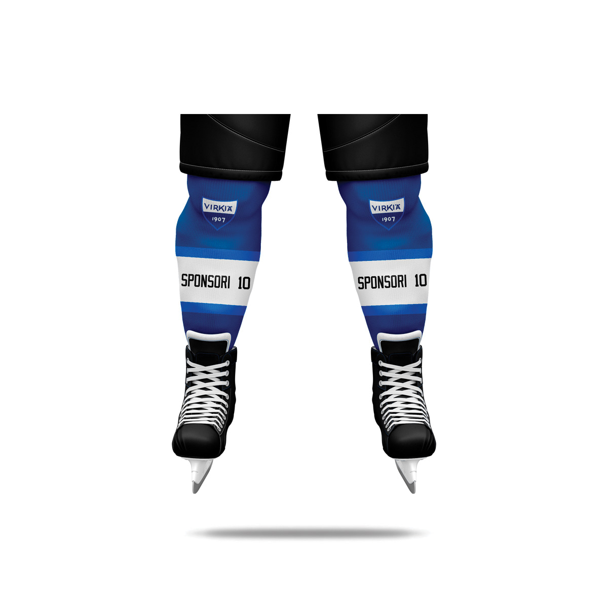 Sublimoidut jääkiekkosukat. Materiaali kestävä 100% polyesterineulos. Pelisukan hinta on aina sama riippumatta mainospainatusten määrästä. Ilmoita kassa-sivulla mihin kohtaan tuotetta mainokset haluat ja lataa tilaukseen painettavat logot. Kun valitset pelisukkaan mainoksia saat aina vedoksen hyväksyttäväksi.